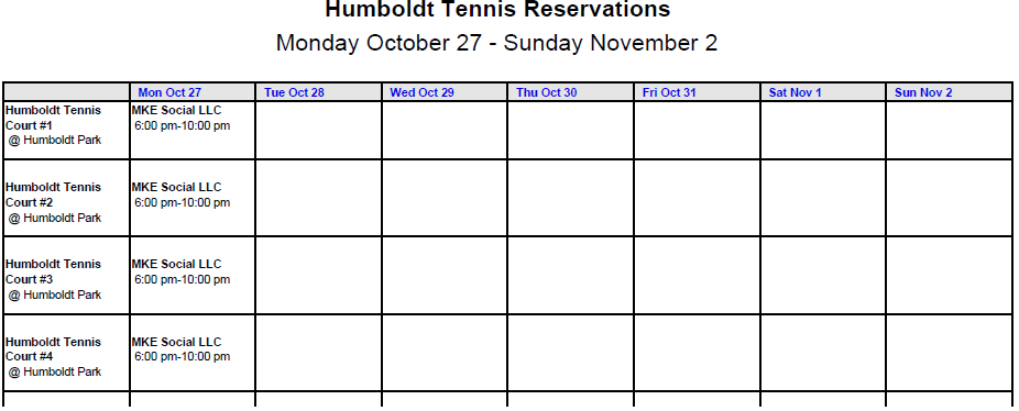 Humboldt Park Tennis Reservations